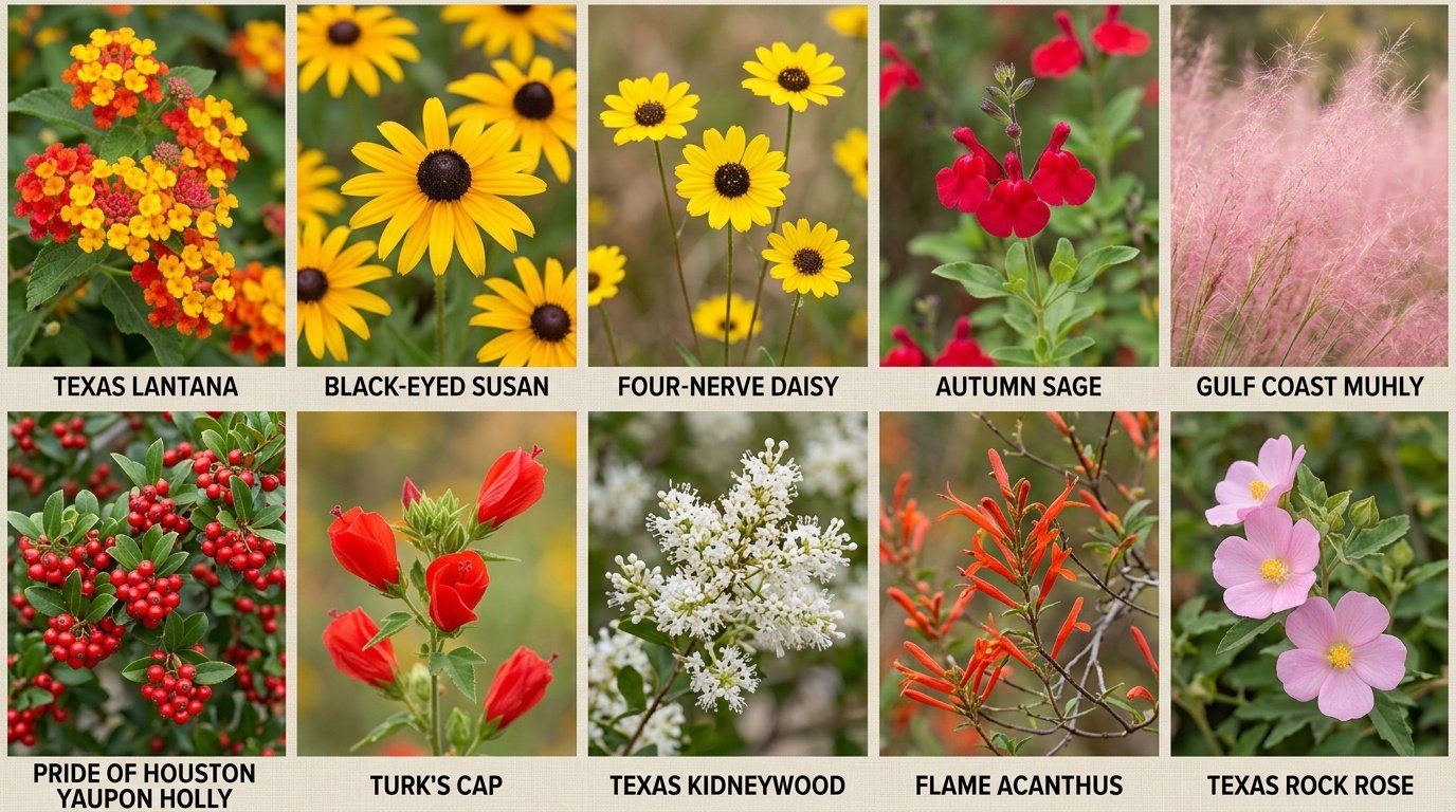 Drought tolerant plants, heat tolerant plants, native plants for Houston, low-maintenance garden Houston, Texas native shrubs, xeriscape Houston, drought tolerant perennials Texas, pollinator garden Houston, water-wise landscaping Houston, Texas native wildflowers, Gulf Coast native plants, best plants for Houston heat, deer-resistant plants Houston, curb appeal Houston homes, native plant landscaping Texas.